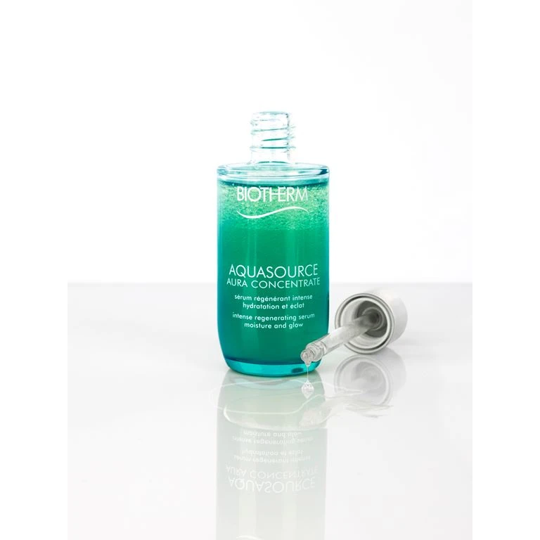 Aquasource Aura Concentrate Serum fra Biotherm giver intenst fugt og glød. Ryst flasken inden brug, for at aktivere de mange millioner af fugtgivende mikrodråber. 50 ml.